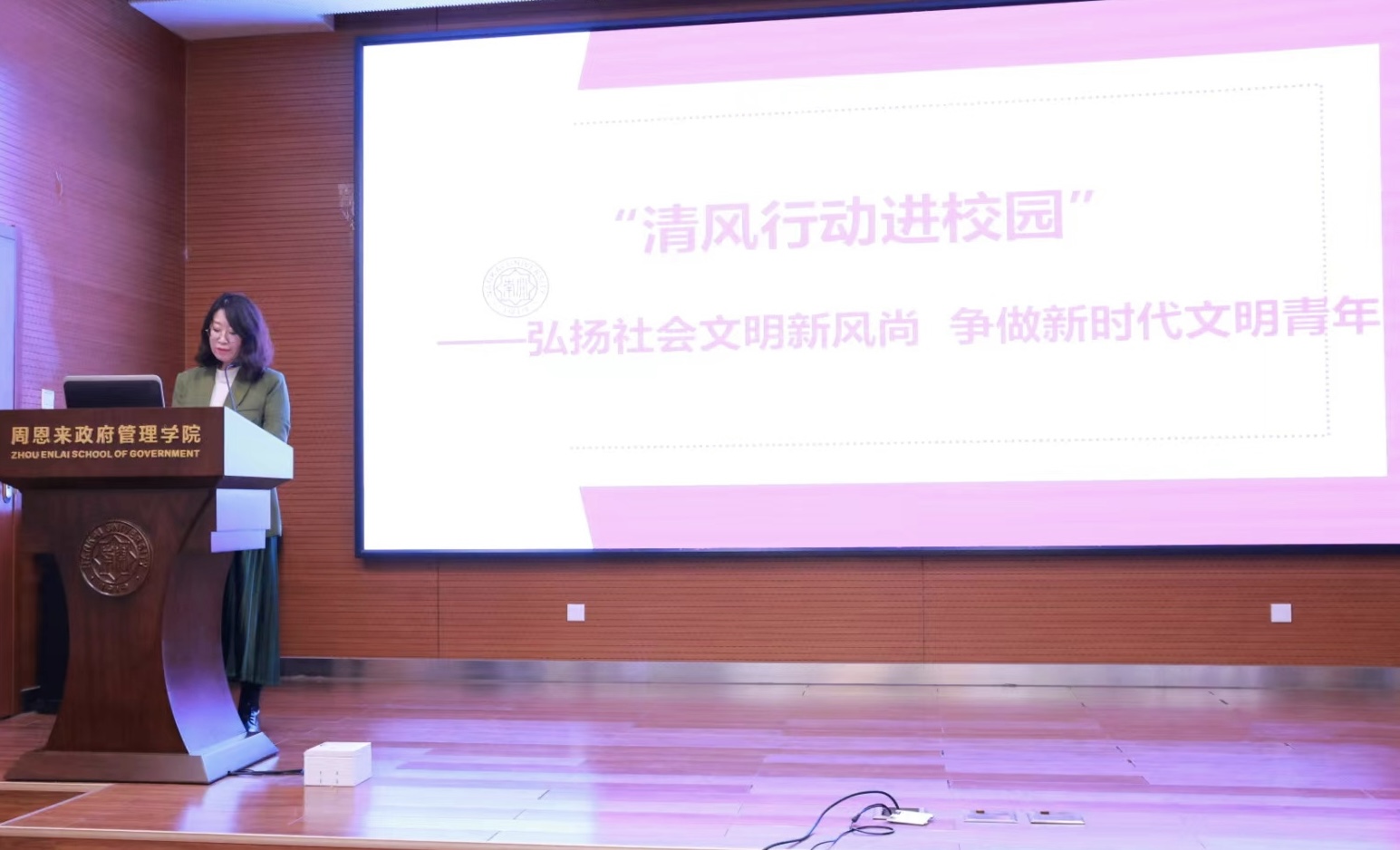 (通讯员:陈佩其、罗昕怡、全鑫 摄影:朱佳琪)为深入学习贯彻党的二十大精神,推动建设文明校园,球王会体育官方网站周恩来政府管理学院于4月4日开展“清风行动进校园”系列活动。天津市殡葬事业管理处纪委书记李欣等一行人来到球王会体育官方网站参与本次活动,球王会党委副书记兼副经理宋媛、团委老师及各年级员工参加本次活动。