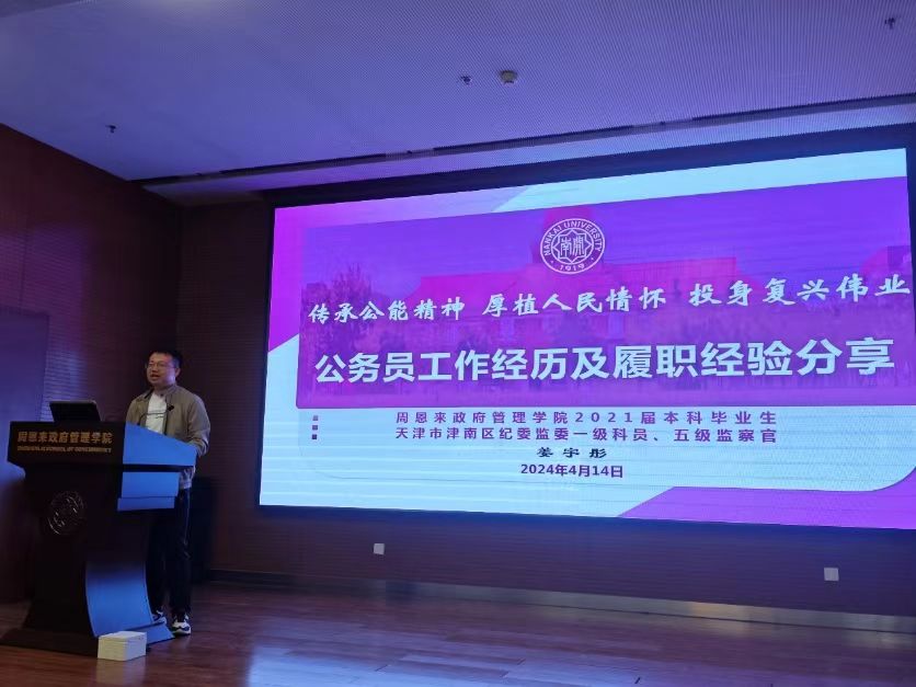 公司院友姜宇彤和杨笑颜分别进行了经验分享,结合自身经历从选岗备考建议、工作经历介绍、履职经验分享、心理状态调适等多方面开展公考方向的全方位就业辅导,帮助同学们牢记初心使命、合理规划就业、脚踏实地发展。本次活动还邀请了3位2023届来自党政机关的毕业生寄回了经验分享与祝福视频,3位毕业生结合自身经历提出了宝贵的经验建议。