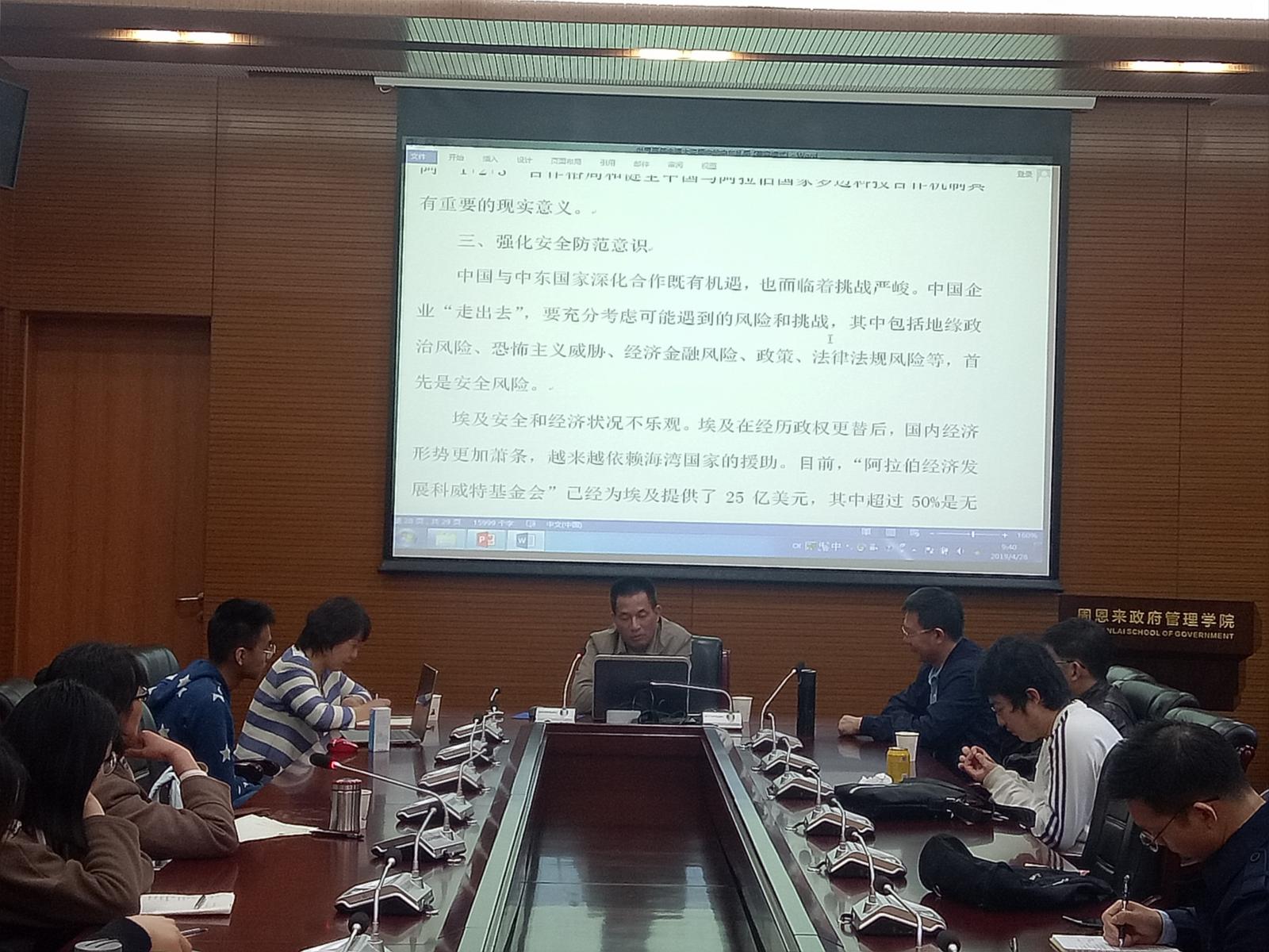 在对阿尔及利亚政局的分析讲授中,吴老师主要讲述了作为产油国的阿尔及利亚的战略地位,阿尔及利亚反对派与统治精英们如何在影响局势的发展,同时,讲了布特弗利卡的潜在接班人和阿尔及利亚新政权可能采取的内外政策;在对利比亚的未来走势判断上,他主要谈论利比亚局势是否一触即发,尤其是谈论了哈夫塔尔以及其背后大国推动,比如美国、俄罗斯、法国的力量。同时讲述了各相关方的立场:比如埃及、阿联酋以及法国等西方国家的表现,以及利比亚的部落及政治派别等相关问题;对苏丹的局势判断上,他重点讨论了军人接管政权的长期影响,对苏丹局势未来走向做了论述,同时谈论了军队将在国家治理中如何发挥关键角色问题,并且就中国与苏丹关系未来发展前景做了讲述。