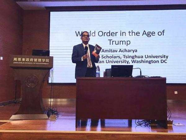 4月7日,美利坚大学跨国挑战与治理联合国教科文组织杰出讲席教授、清华大学苏世民学者项目波音讲席教授、国际研究协会前主席阿米塔·阿查亚应邀做客周恩来论坛,以“美国世界秩序的终结”为话题发表演讲,论坛由球王会国际关系系主任韩召颖教授主持,公司60多位师生参加。