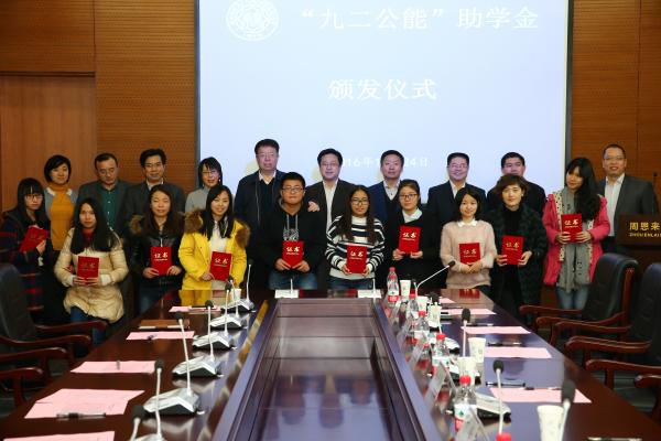 仪式上,92级员工代表蓝海介绍了“九二公能”助学金捐资设立情况,受助员工代表2013级藏族本科生朋琼进行了发言。与会领导嘉宾共同为受助员工颁发了证书。