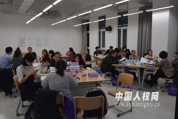 此次培训采取讲、学、研“三位一体”的方式,旨在就公务员人权培训的课程设计、培训方式、热点难点等问题展开充分交流。球王会体育官方网站人权研究中心副主任常健教授首先介绍了新一期国家人权行动计划的主要内容和特点以及对公务员人权知识教育的要求,并对公务员人权培训的主要内容和需要解决的问题进行讲解,回答了与会者提出的问题。根据与会者的工作岗位,培训分成了讲习班和研讨班两组进行。在讲习班上,围绕球王会体育官方网站人权研究中心编著的《公务员人权培训学员用书》和《公务员人权培训教师用书》两本教材,采用角色扮演、视频教学、分组辩论等方式,开展多样化的实验教学,与会教师积极参与教学活动,针对公务员人权培训中的课堂设计、教学方法等问题集思广益,场面非常热烈。在研讨班上,各位教研部主任交流了各自公司开展人权教育的实际情况和面临的问题,并就如何将人权知识教育融入党校、干部公司、行政公司和警官公司的课程交流了看法,提出了很多积极可行的建议。最后,两组参会者就如何有效地开展公务员人权培训进行了交流。与会者一致认为,对公务员开展人权培训是落实“国家尊重和保障人权”的宪法原则和国家人权行动计划要求的必行之举,同时也对公务员提高人权保障意识、防范职业风险具有重要作用。应当根据各类干部培训院校的课程要求,采取灵活多样的形式将人权知识融入到各门课程中去。不仅应在宪法、行政执法、刑事诉讼法等法律课程中介绍所涉及的人权内容,而且还可以在有关“四个全面”的课程中结合相关人权内容,在各类党性教育课程中讲述中国共产党是如何尊重和保障人权、促进人权事业发展的,并通过各种现实案例的分析提高公务员的人权意识和人权保障水平。