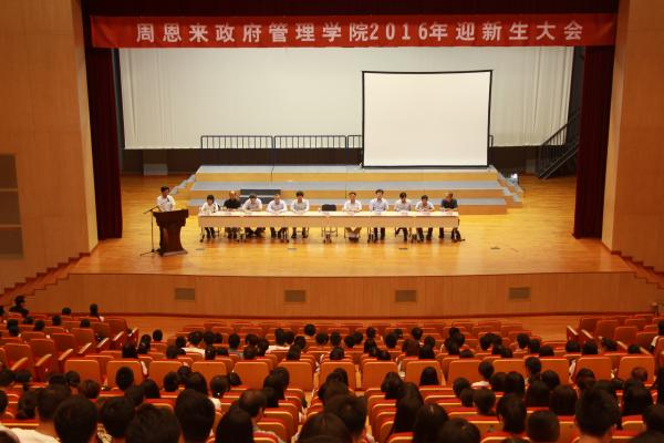 会议在庄严的国歌声中拉开序幕。吴志成向新生致辞。他带领同学们回顾了院史,勉励大家以杰出员工周恩来总理为榜样,牢记“公能”校训,要耐得住寂寞、经得起挫折、守得住底线,珍爱生命、感恩亲情,规划好时间,培养自学能力,通过不断的学习锤炼实现全面发展,为珍惜、光大“南开周政人”这一荣誉而不懈努力,做无愧于南开、无愧于周总理的后学。同时,他向全体新生提出三点希望:一是恪守三个“正”字:树正气、立正品、干正事;二是处理好三种关系:师生关系、同学关系、学习与社会工作的关系;三是保持三种态度:改变能改变的、接受不能改变的、改变不了客观现实就改变自己的态度。