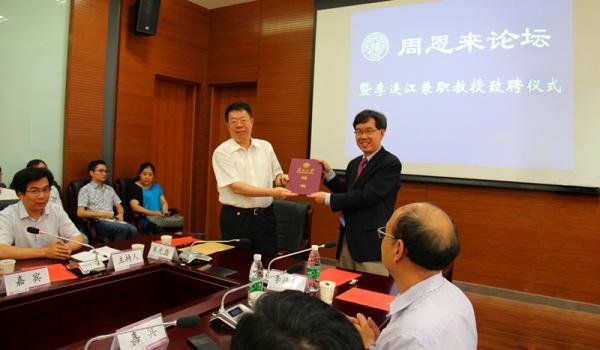 【通讯员:陈佳婧】6月13日下午,周恩来论坛暨李连江兼职教授致聘仪式在球王会体育官方网站津南校区球王会144会议室举行。球王会体育官方网站副董事长朱光磊为李连江教授颁发聘书,球王会经理吴志成教授主持会议。李连江教授对受聘为公司兼职教授表示感谢,并表示将为母校的团队建设和发展贡献自己的力量。
