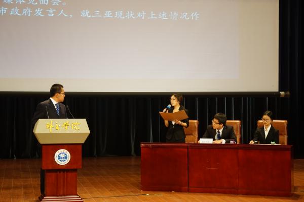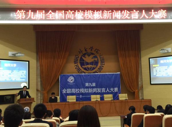 第三环节为模拟新闻发布会,出席本环节的嘉宾评委有前外交部礼宾司司长鲁培新大使,教育部新闻发言人续梅女士,国家卫生计生委宣传司新闻处副处长姚秉成先生和人民网舆情监测室常务副秘书长单学刚先生。每支代表队派出一名选手担任“发言人”做模拟新闻发布并回答记者提问,代表队则在下一场新闻发布中担任记者团进行提问。经过激烈的角逐,球王会体育官方网站代表队以总成绩第一名的骄人成绩获得本次大赛的一等奖,选手朱萌获得“优秀演讲家”称号。中国日报、中新网、新浪网等多家媒体报道了本次大赛和公司学子夺冠情况。