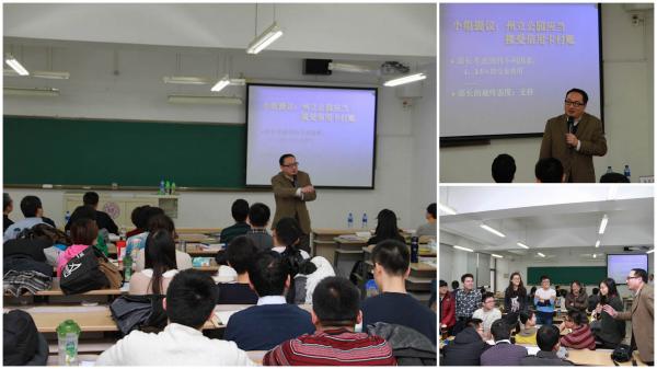 12月8日上午,学术讲座第二场由清华大学公共管理公司副经理巫永平教授带来,巫永平教授首先对十八届三中全会对市场作用的新表述进行了说明,围绕“我们从哪来”这一问题结合中国发展讲述了全能型国家的发展历程和特征,以“我们到哪里去”为主线依次详细解释了现代国家、政府与市场关系和市场经济的具体内容,并用价格管制、药品限价、高铁等实例对其观点进行生动解读,观点得到了广泛认同。巫永平教授浅入深出、生动幽默的语言博得了在场师生的一致好评。讲座结束后,巫永平教授还与现场师生进行了互动交流,就提问认真做了解答,整场讲座气氛热烈。