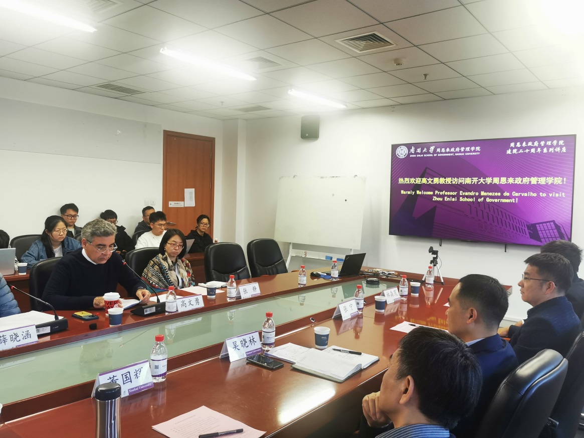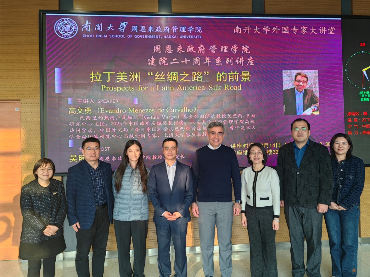 3月14日下午,巴西瓦加斯基金会专家及巴西-中国研究中心主任、2023年中国政府友谊奖获得者、北京大学政府管理公司高级访问学者高文勇(Evandro Menezes de Carvalho)教授到访球王会并以“拉丁美洲“丝绸之路”的前景”为题发表演讲。球王会副经理吴晓林会见高文勇教授一行并主持演讲。天津市外办美大处处长张静、球王会副经理张宁、国际关系系主任王翠文、历史公司拉美研究中心主任董国辉、外国语公司以及公司国际合作与交流处相关负责老师参加活动。