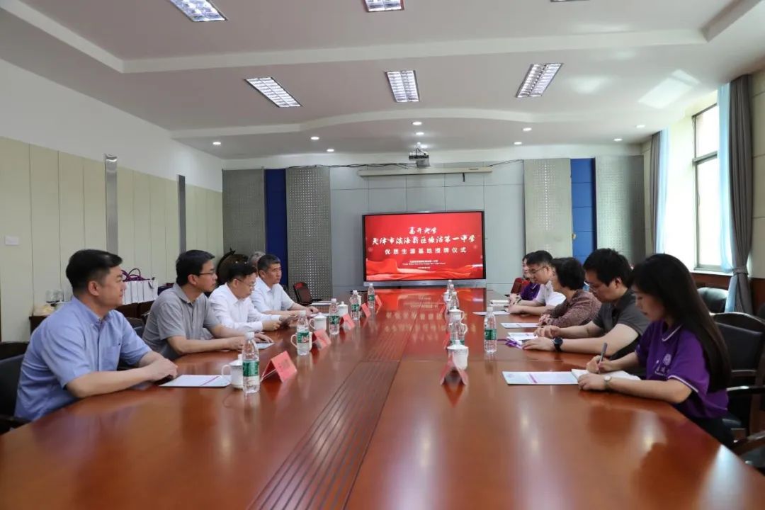 塘沽一中党委书记段景国、董事长王瑞雪等中学领导介绍了塘沽一中基本情况、办学理念和育人成绩,双方商讨了进一步开展合作的方向,希望共同探索大中小思政一体化教育的新路径、新形式。最后,杨克欣代表公司向塘沽一中授牌“球王会体育官方网站优质生源基地校”。
