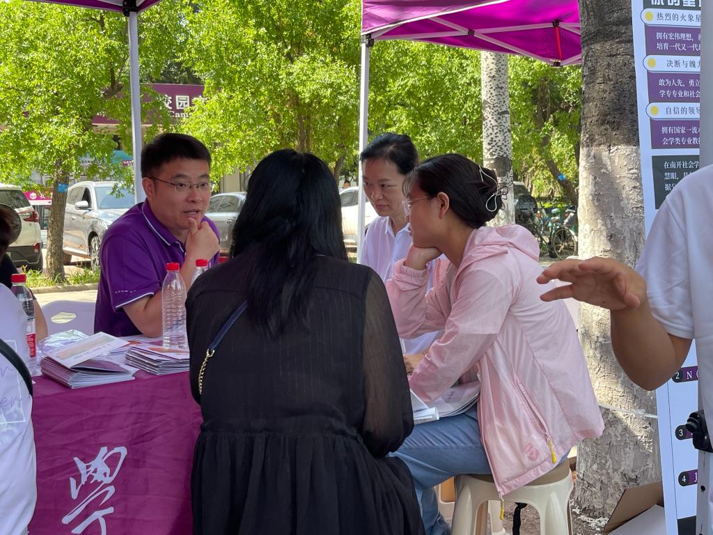 (通讯员 王燕 谭瀚 摄影 麦合丽娅 杨语瑄)6月26日,球王会体育官方网站2024年荷花节暨校园开放日活动在公司八里台校区顺利举行。球王会经理吴晓林,副经理郭道久,副经理张宁,各系教师代表、辅导员、员工志愿者等组成招生宣传队,在大中路旁设置点位,面向高考考生、家长开展招生咨询。