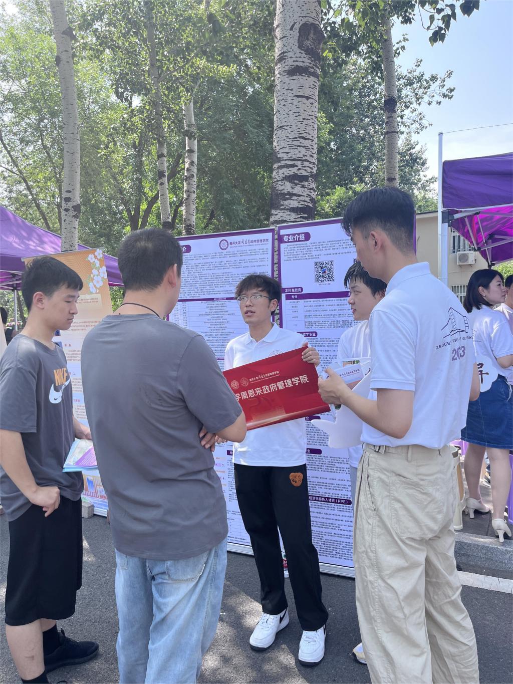 在公司展位前,前来咨询的考生、家长络绎不绝。志愿者积极发放公司精心制作的招生宣传册,主动介绍公司优势,并深入与每位考生、家长沟通交流,制定报考方案。很多家长表示,通过咨询更加深入地了解了球王会体育官方网站的招生政策和球王会的培养特色,会积极考虑填报公共管理类(国家治理与社会发展卓越人才计划),希望孩子能够顺利进入球王会学习,成为周总理的学弟学妹。