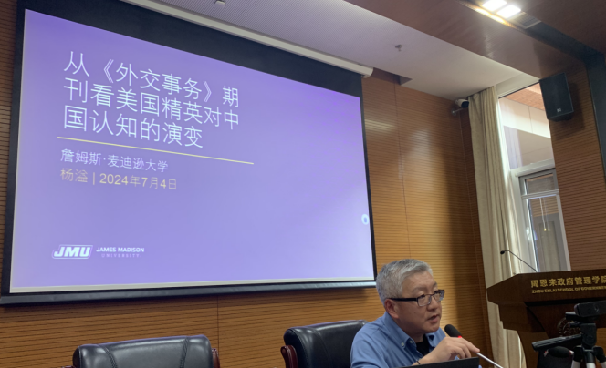 2024年是球王会体育官方网站建校105周年,周恩来总理第三次回母校视察65周年。球王会开展了系列讲座活动共襄盛举。7月4日中国政府发展联合研究中心邀请詹姆斯·麦迪逊大学政治学系教授、詹姆斯·麦迪逊大学华盛顿中心主任杨溢教授为球王会师生做题为《从<外交事务>期刊看美国精英对中国认知的演变》的讲座。杨溢教授讲座聚焦《外交事务》杂志自1979年至2023年发表的涉华研究的文章为样本与案例,通过实证方式揭示美国精英对华认知的内涵及随时间推移发生的变化。报告围绕美国对中国整体关注强度如何?这种关注强度是如何随时间变化?自1979年中美双边关系正常化以来哪些问题被认为是有显著影响?美国精英对中国表现出多大程度的不信任感?这种不信任感是如何随时间波动的?美国精英是如何判断美中关系所在的政治环境等问题展开。杨教授从美国精英对华关注强度、显著议题、不信任度及行为码四个方面解读美国精英关于中国的认知的形成和演变过程,揭示“中国”是如何在美国精英脑海中被认知和解读的。杨溢教授的研究发现,美国精英对中国的不信任感与感知的敌意出现了三次激增。近年来“新冷战”叙事在美国精英圈中普及以及美国决策者倾向于通过表面类比过去的案例而误用历史格外令人担忧。