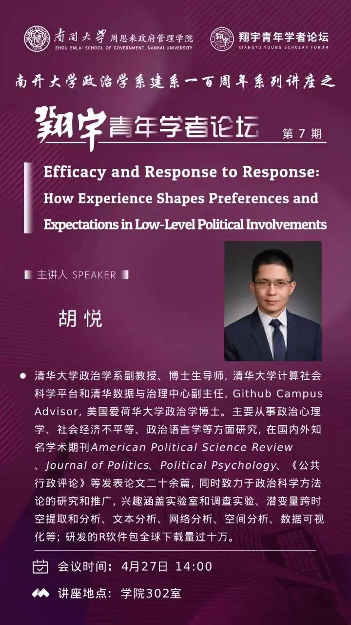 2023年4月27日14:00,球王会政治学系建系一百周年系列讲座之“翔宇青年学者论坛”举行第7期学术活动,敬请关注!